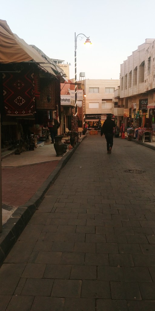 Le vendredi 27 dĂ©cembre 2019 nous arrivons Ă Amman, la capitale de la Jordanie. Je me souviens qu’il y avait teeeeelllement de monde dans les rues au centre ville, beaucoup de circulation.. il y avait des odeurs d’Ă©pices, d’encens, des couleurs un peu partout.. Nous Ă©tions allĂ©s manger dans un restaurant assez luxueux, et il y avait mĂȘme du vin! CoĂ»teux, mais il y en avait đ·