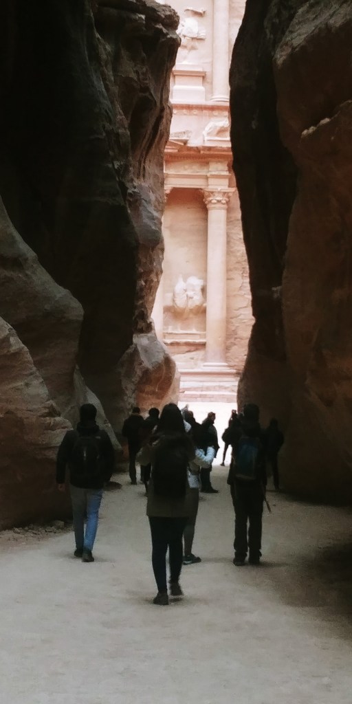 Le 2 janvier Ă 06h00 nous Ă©tions debout. On faisait partie des premiers Ă arriver sur le site de Petra… il faut savoir qu’il faut dĂ©jĂ marcher 2km pour atteindre le trĂ©sor. Mais une fois qu’on la atteint, tout devient magique đ«